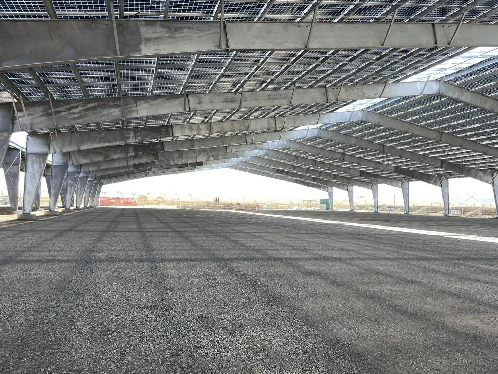 Each of these structures feature clear spans of 180’ and are 330’ long, providing excellent weather protection and ongoing clean power for the adjacent cooler.