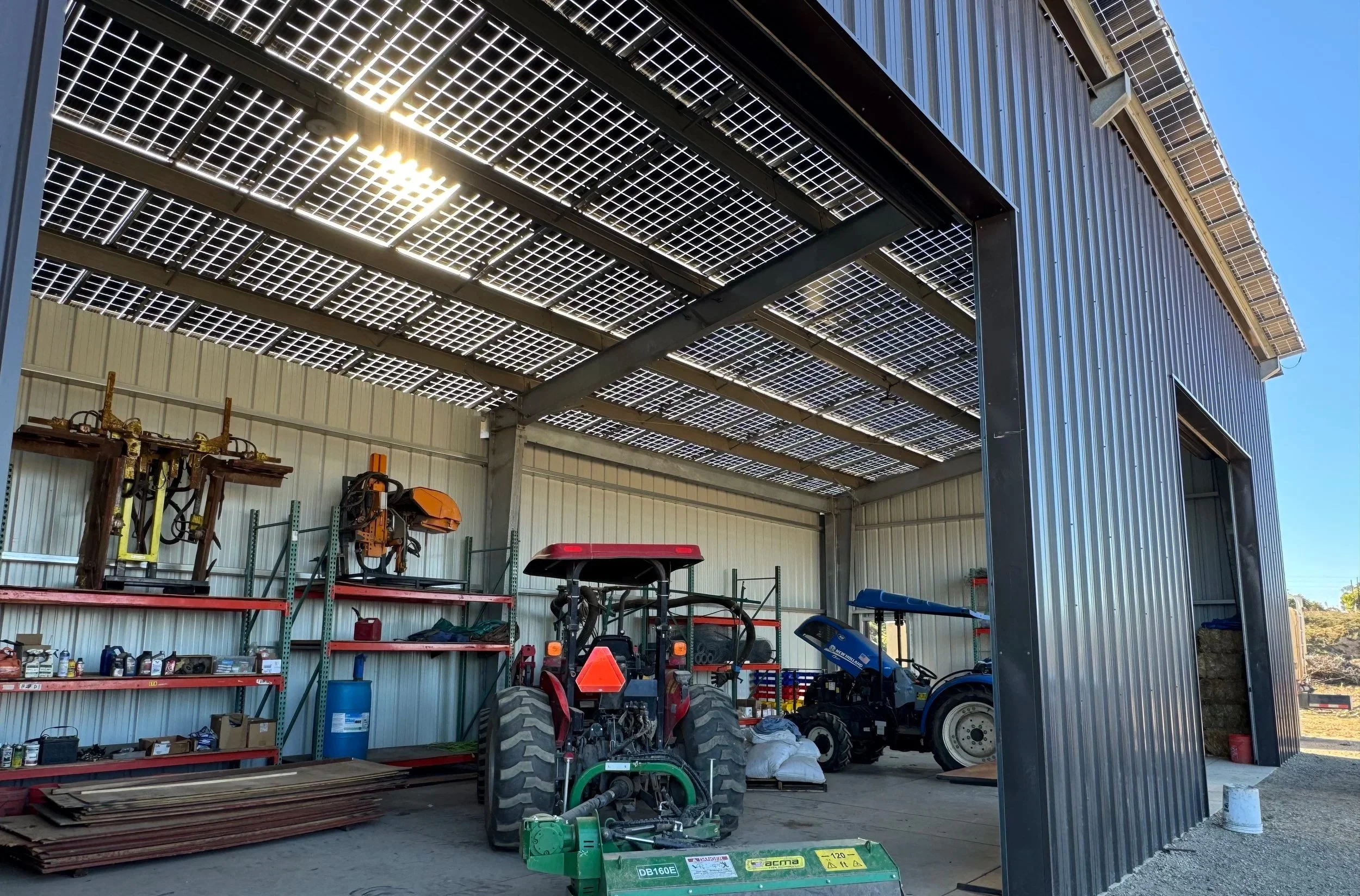 Each of these structures feature clear spans of 180’ and are 330’ long, providing excellent weather protection and ongoing clean power for the adjacent cooler.